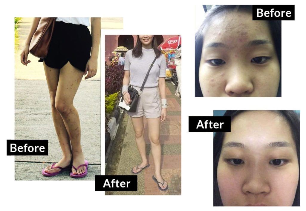 Little did I realise that my eczema condition was also turning for the better! The rashes were drying and clearing up on my skin, and I didn’t have to rely on the anti-itch pill nor the steroid cream that I have to apply every night before I sleep. Eventually, I stop feeling the itch and it’s been 2 years that I’ve stopped my medication for eczema. My skin till date is free from open wounds and the scars are also starting to lighten in colour too.